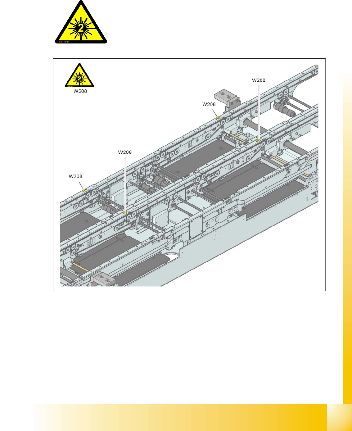 2.2.8 Warning label W208 "Laser class 2" on the PCB conveyor