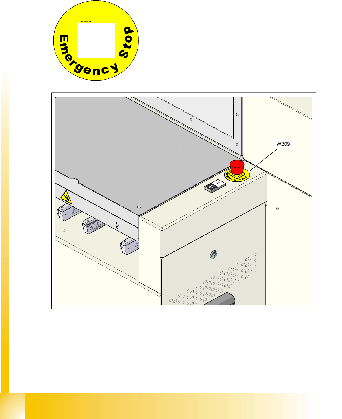 2.2.9 Warning label W209 on the emergency stop buttons
