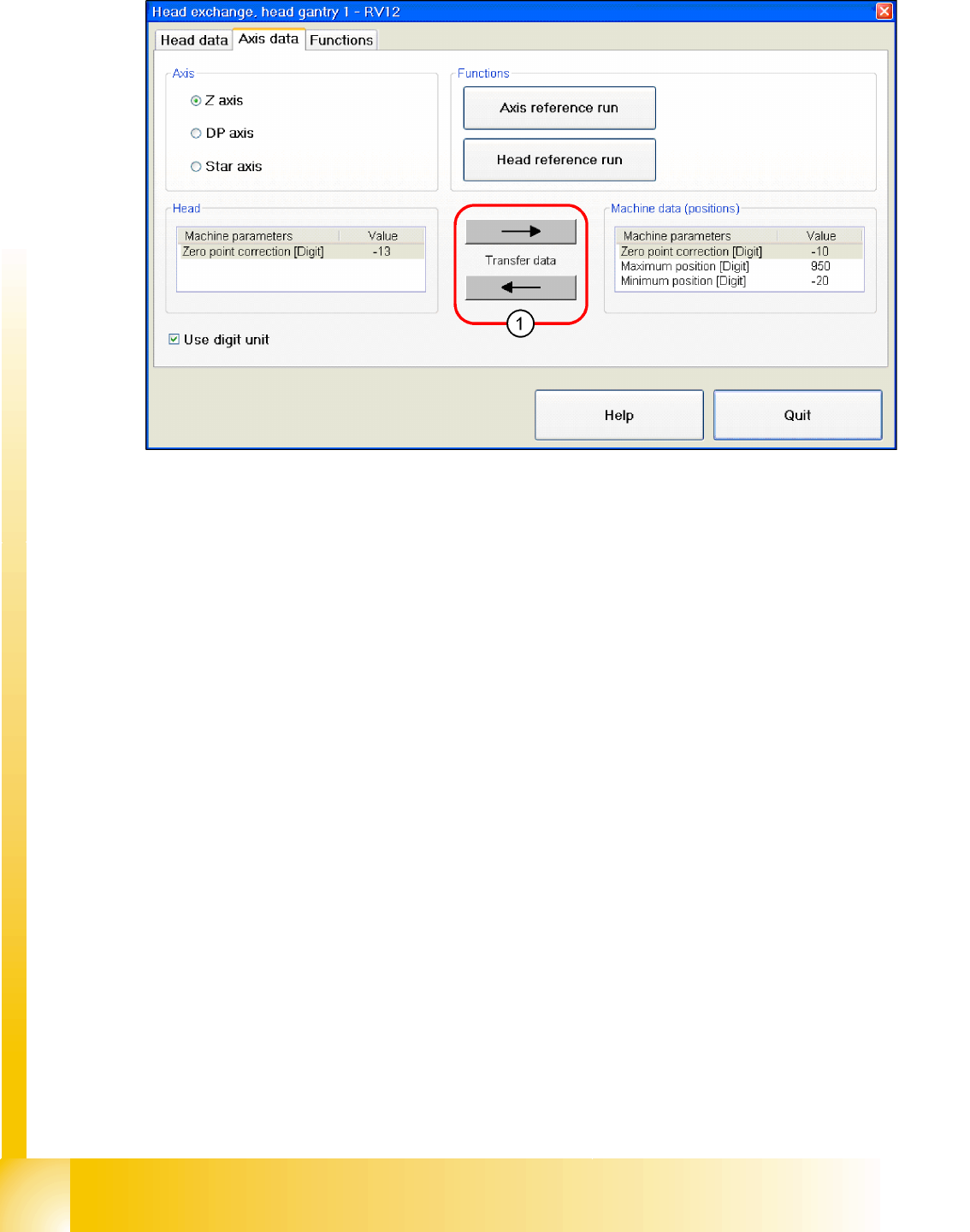 data. You can also write the Z and star axis data from the machine data to the head EPROM.