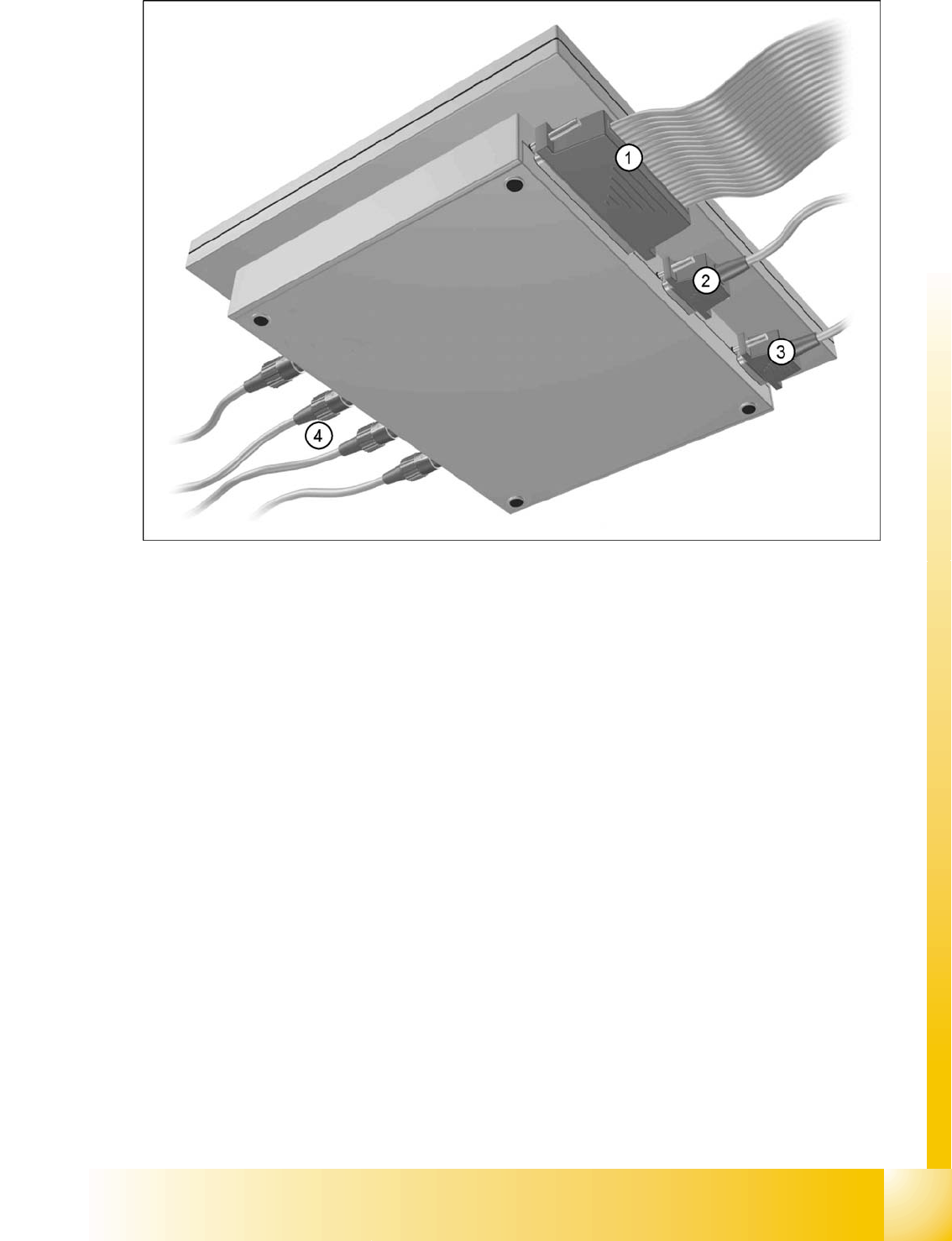 An adapter is attached to the ribbon cable in order to connect the 25-pin axis controller.