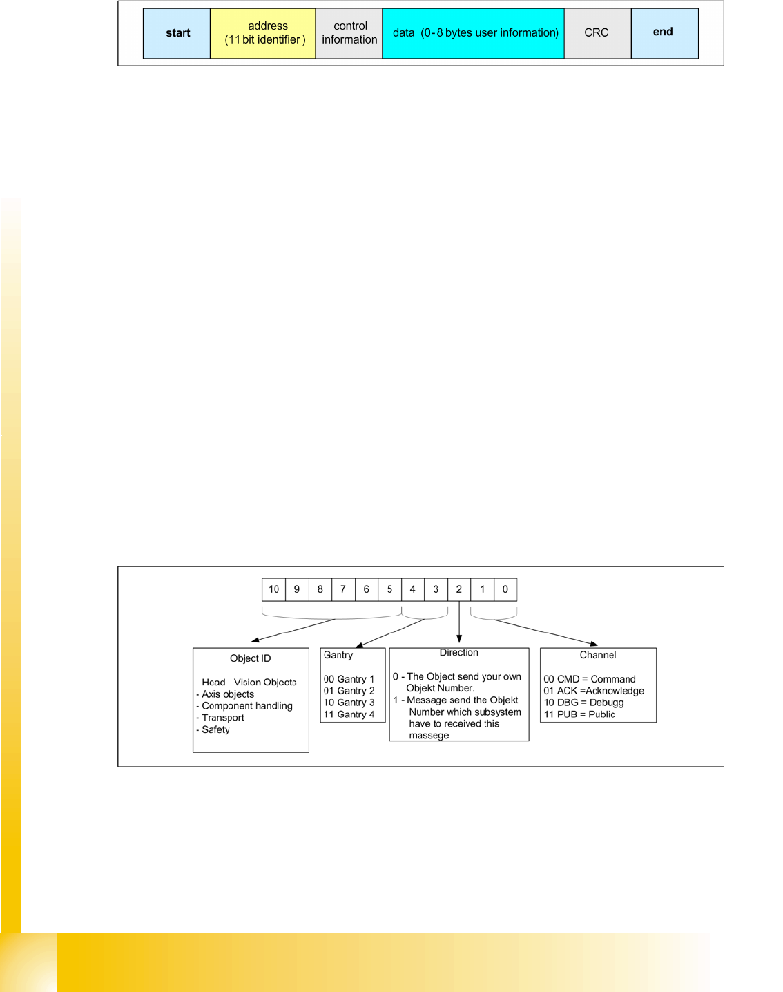 The CAN bus system is using the 11 Bit identifier for addressing the different CAN objects