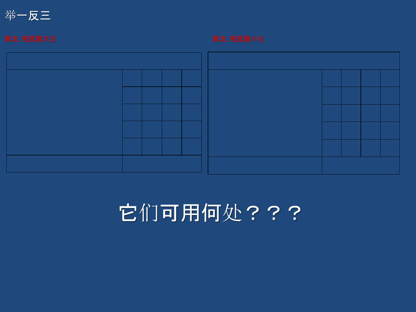 亮度最大值 像素亮度值 (夸大假设 ) 0.3 0.1 0.3 0 0.2 0.2 0.1 0 0.4 0.5 0 0 0.9 0.4 0.1 0.3 0.3 0.6 0.6 0.6 亮度最大值 0.9 亮度最小值 像素亮度值 (夸大假设) 0.3 0.1 0.3 0 0.2 0.2 0.1 0 0.4 0.5 0 0 0.9 0.4 0.1 0.3 0.3 0.6 0.6 0.6 亮度最小值 0