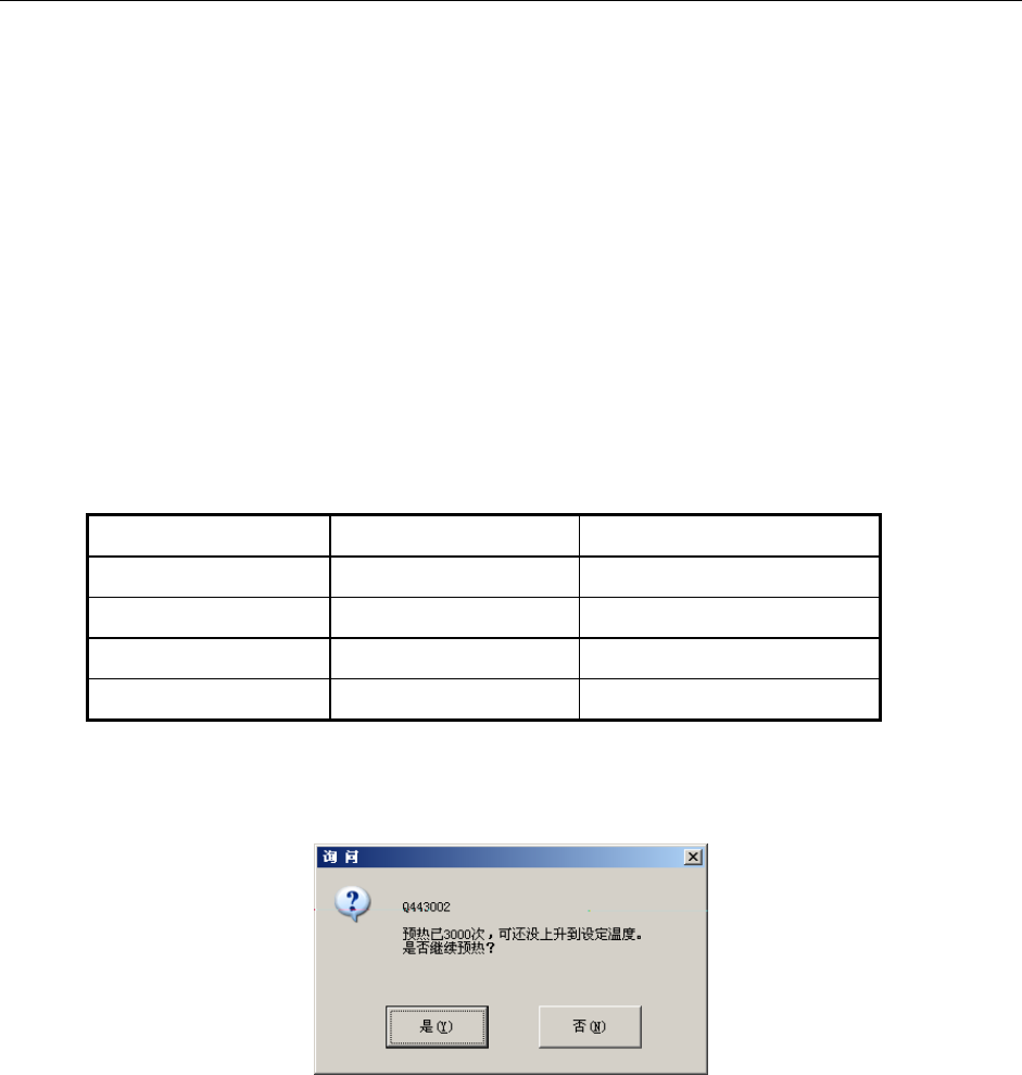 达不到所设置温度时,每进行 3000 次预热操作,会显示询问框,询问是否要持续进行预热操作。