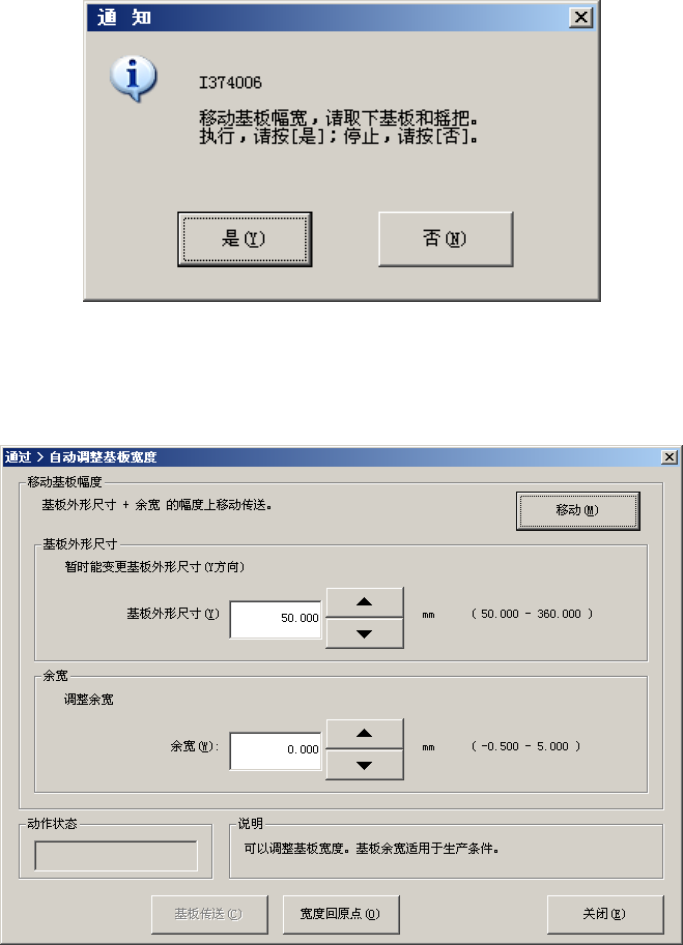 全轴退避后,显示询问调整基板宽度信息画面图 2-5-3。