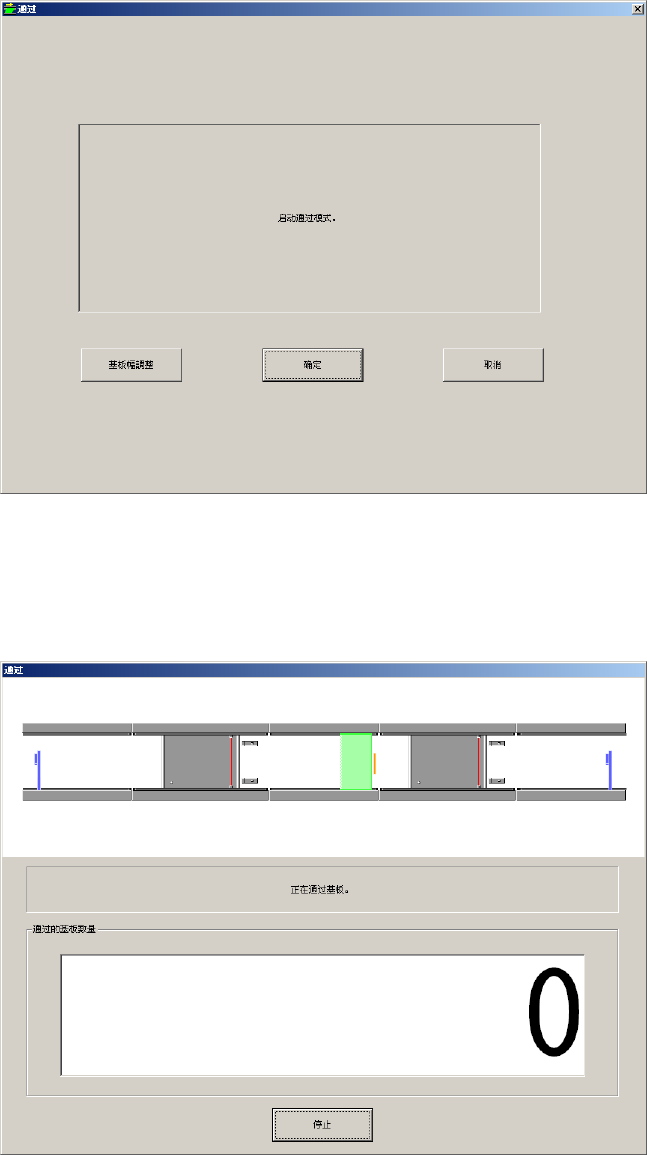 若点击“确定”,则显示以下画面;基板到达传送的传感器上时传送带转动。
