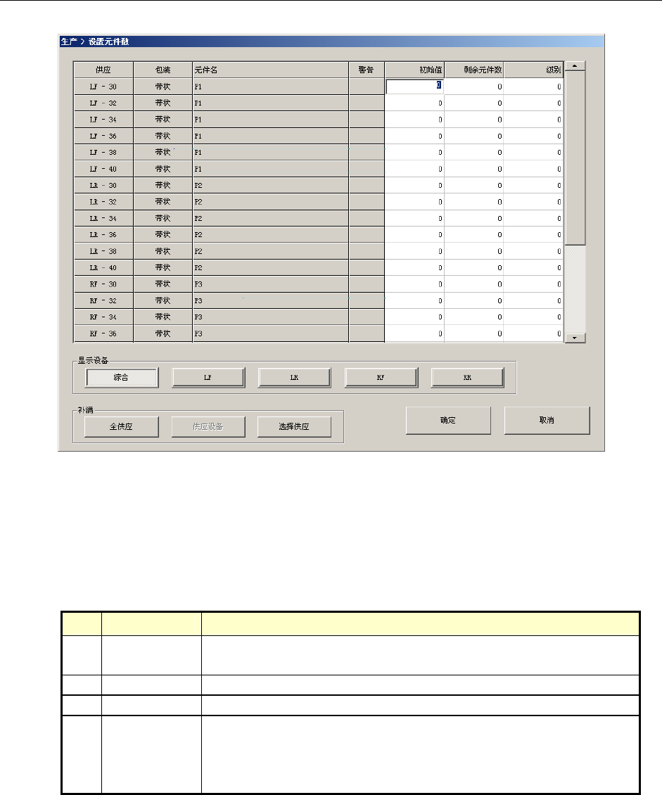 ·显示参见元件数时的元件剩余数。生产时每吸取一件元件,则从