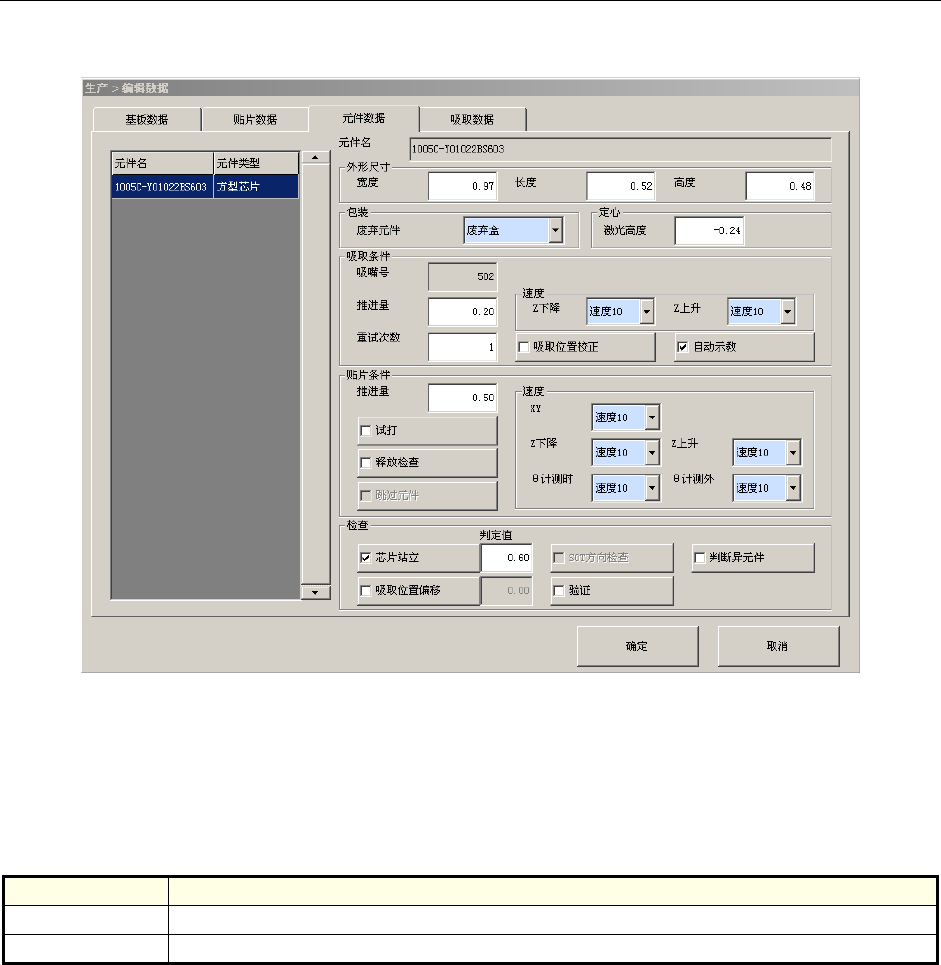 释放检查 对贴片动作后,是否用激光确认元件的释放进行选择。 操作员