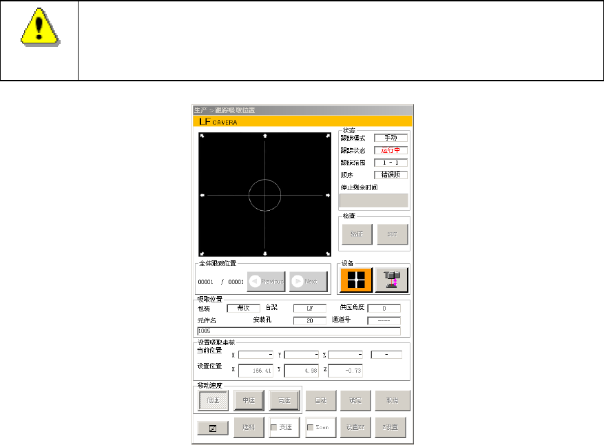 按[确定]按钮开始吸取位置的校正后,显示吸取位置摄像机跟踪画面。
