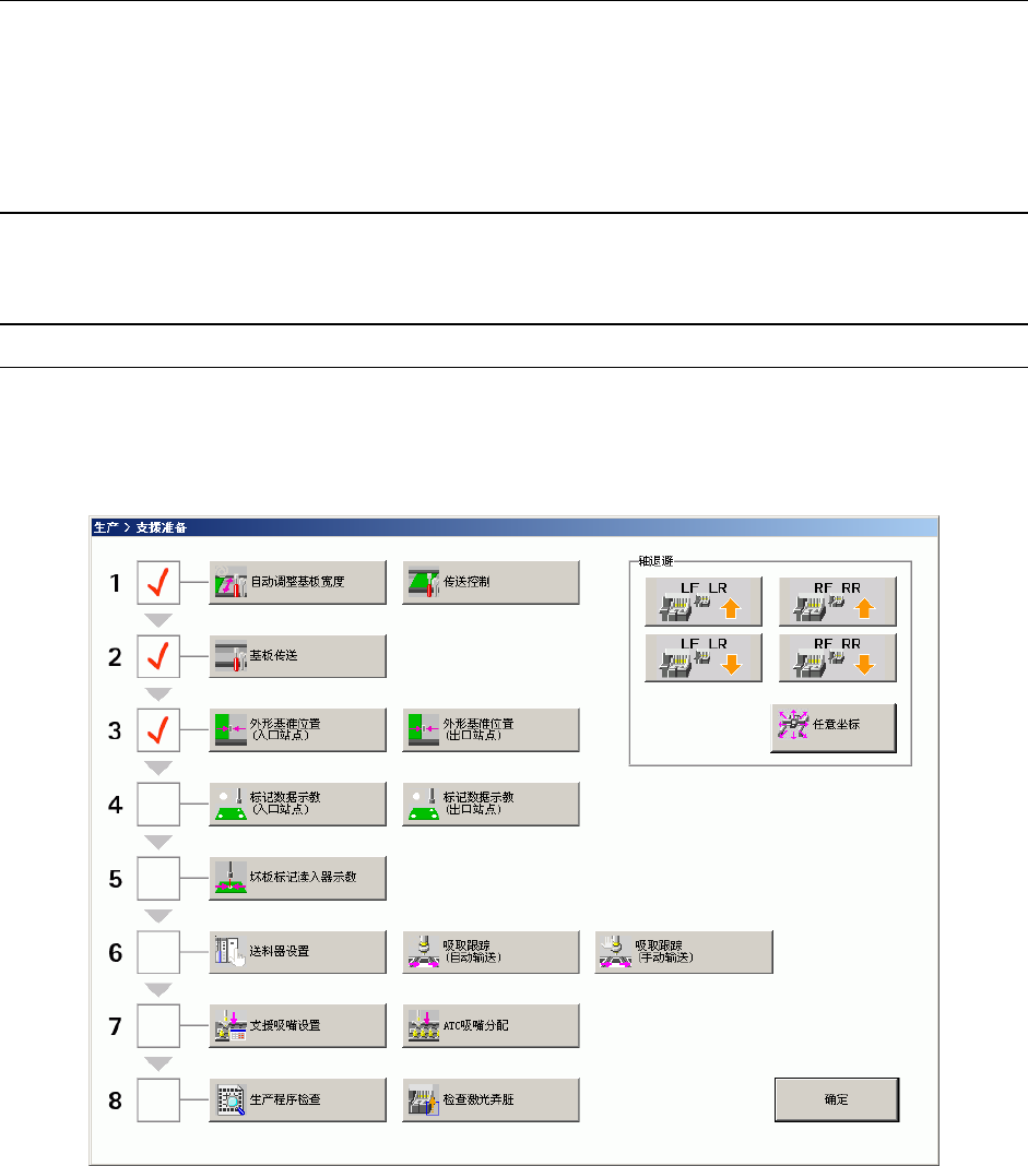 机器使用者只要按“1.基板宽度调整”~“8.生产开始前检查”项目顺序依次完成动作,即可