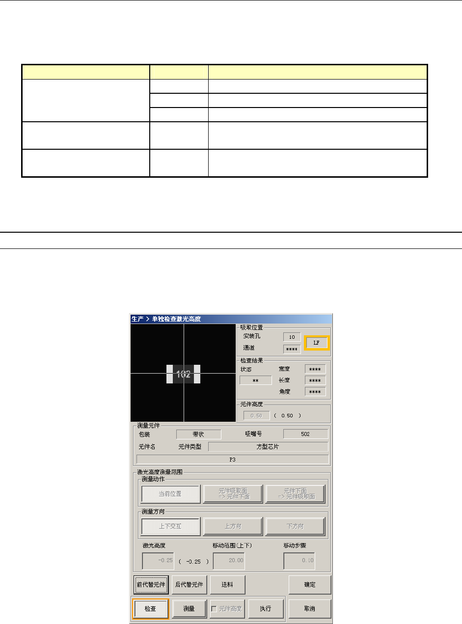 请参见「2-12-5-5 测量激光高度 (2) 激光高度测量值 4」 同时测量元件高度」。