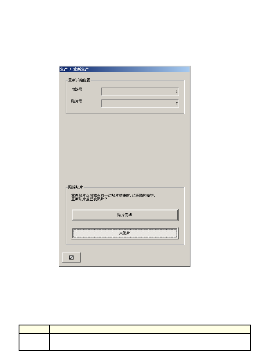 请目检确认贴片跟踪的生产开始点(在生产条件的[重新开始位置]所指定