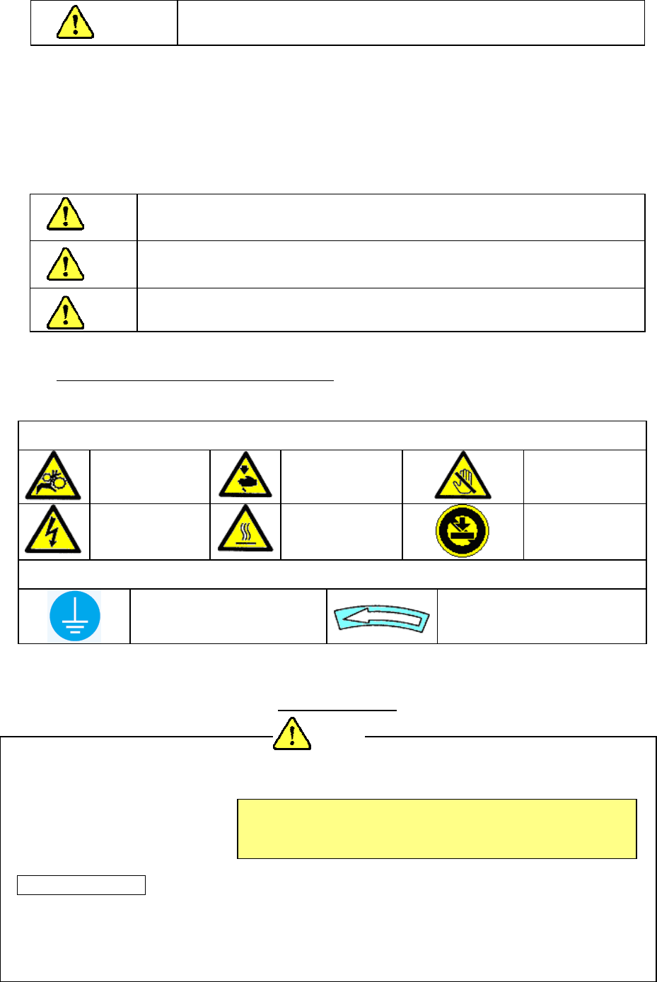 3. 贴在机器上的警告标识,请正确粘贴,使之醒目可见。若发生剥落或污损,请与本公司联系,换成
