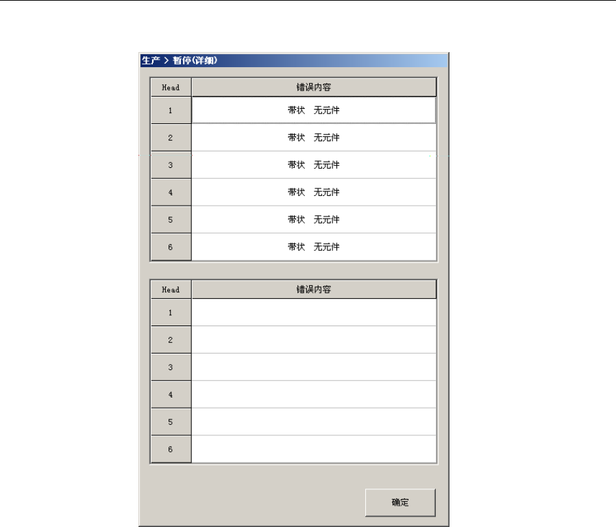 第 1 部 基本编 第 2 章 生产 2-15-1-4 详细信息 在对话框上按[详细信息]按钮时,会显示发生错误的 Head 一览表。 图 2-15-1-4-1 错误详情对话框 2-191
