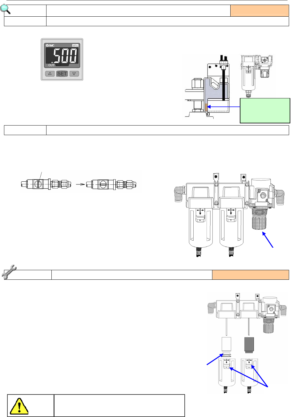1) 在压力表上确认压力为 0.45Mpa ~ 0.55Mpa。 3) 若是排水管连接的瓶内存了水、