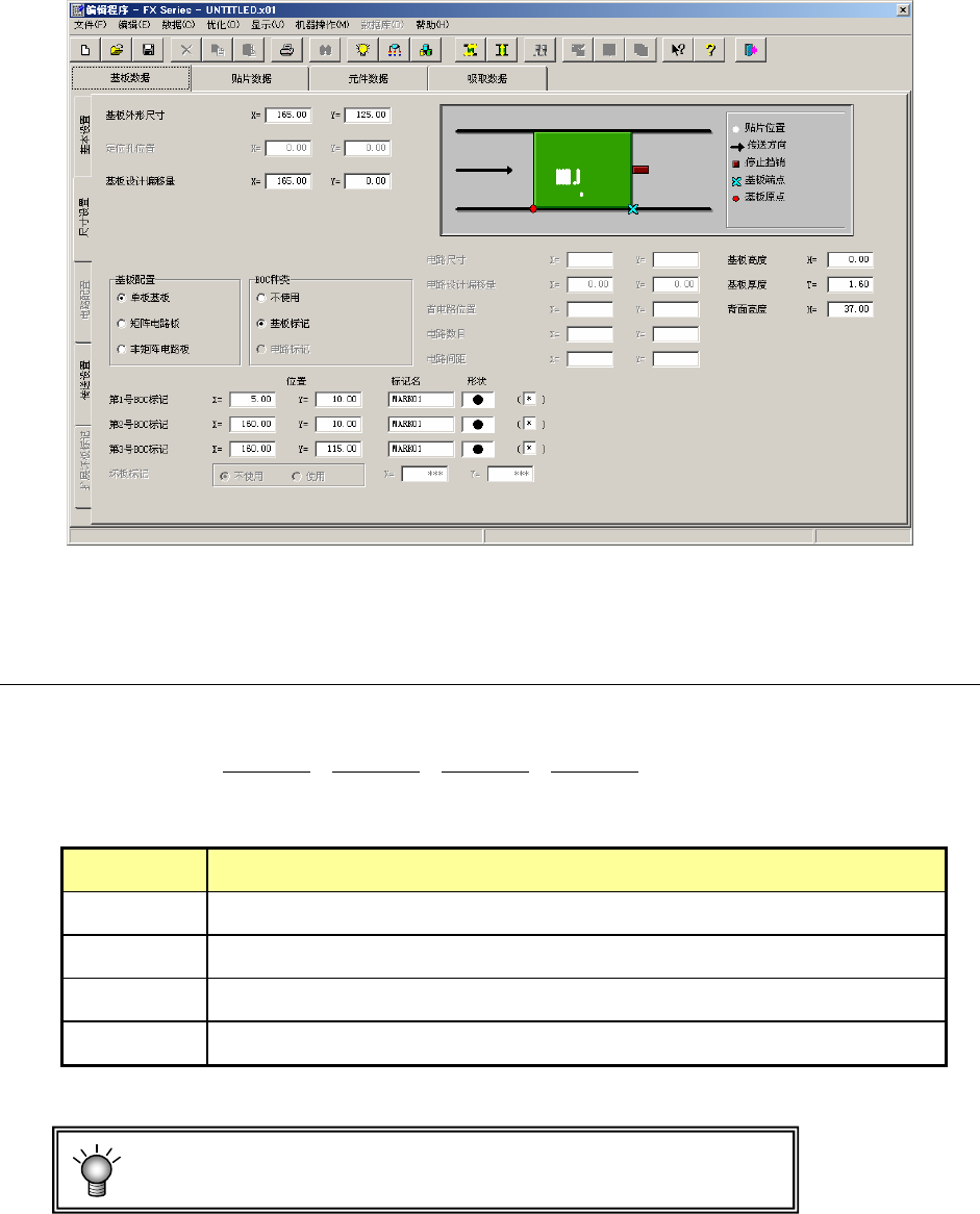 基板数据 处理基板的外形尺寸和 BOC 标记的坐标位置等有关基板整体的数据。