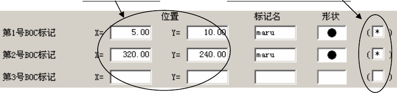 输入由基板位置基准(原点)到各BOC标记的中心位置的尺寸,设置标记名并进行标记形状的
