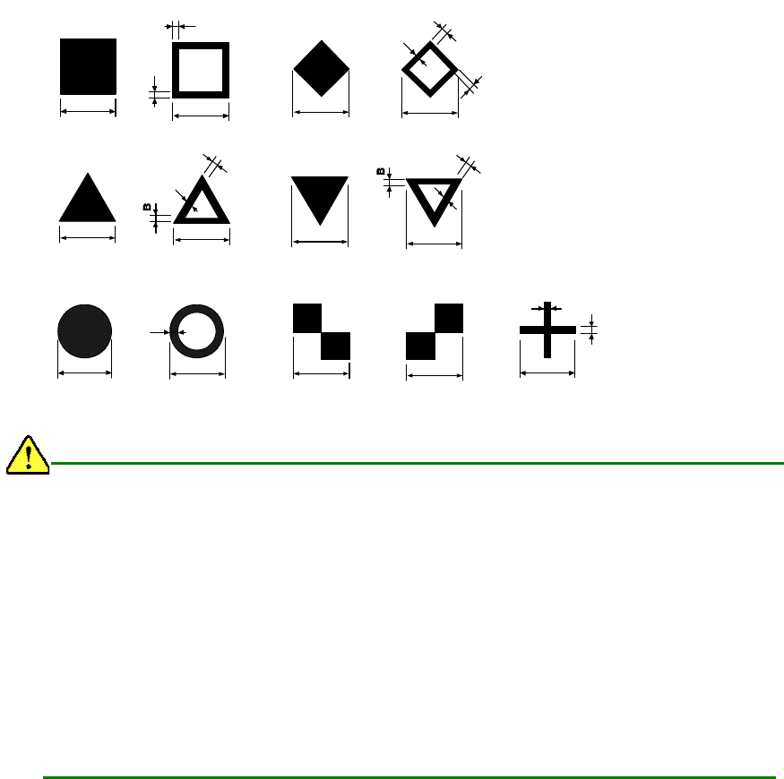 第 1 部 基本编 第 1 章 设备概要 (3) 识别用标记 请按下述条件制作识别用标记。(图1-2-5-4) 但形状推荐使用均匀涂满的圆形。 此外,标记周围的空白区域以图1-2-5-5所示范围为准。 A C C A B A B B 三角形 A B A B C C B B B 正方形 中抜き正方形 菱形 中抜き菱形 円形 中抜き円形 B A C B A C B B 中抜き三角形 逆三角形 中抜き逆三角形 市松模様(1) 市松模様(2) …