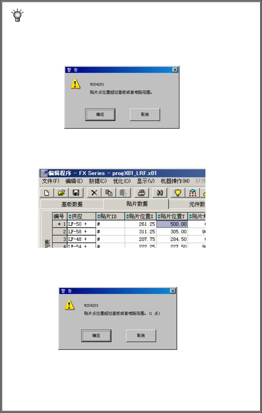 ※ 发生范围检查错误时,请先检查“贴片数据”,如果没有问题,请再检查各“基板数据”