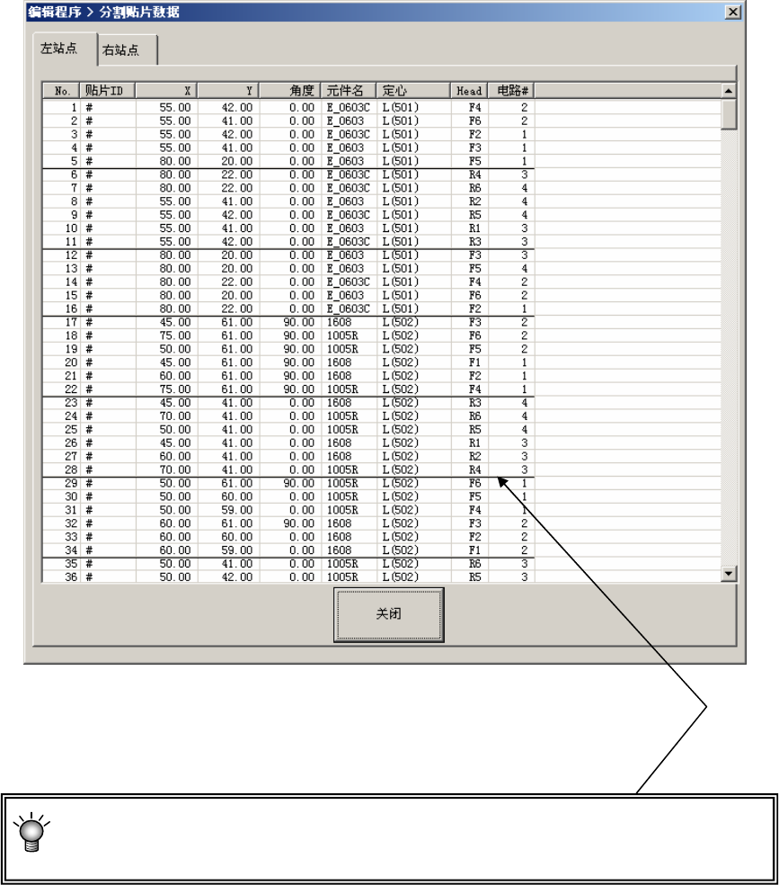 ● 优化顺序显示时的粗线划分,表示在1次吸取贴片的周期动作中被配对的数据