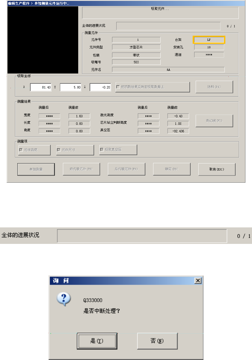 在单独测量过程中,显示如下画面。显示正在进行单独测量的元件的内容及吸取位置,并依次