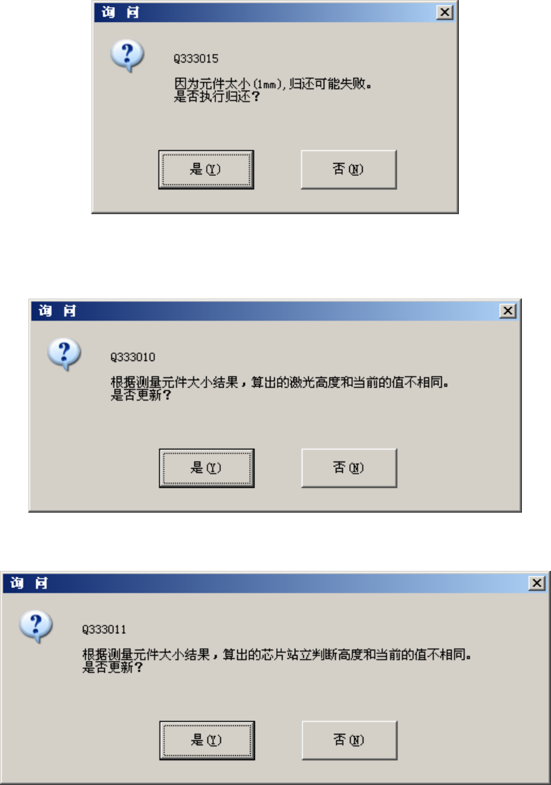 根据尺寸计算出的激光高度或芯片站立判定高度与原来的值不同时,显示如下询问。
