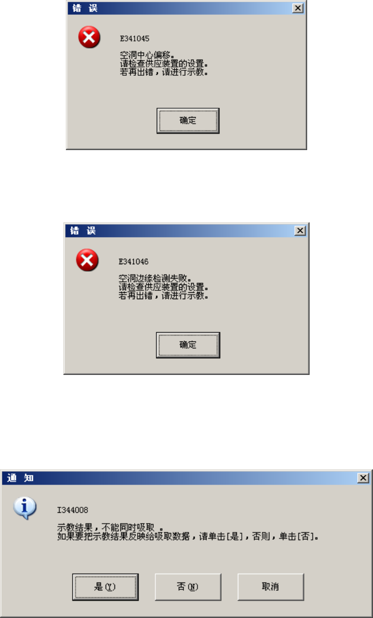 设置的吸取数据与自动示教校正的吸取数据差距过大时,显示如下错误提示。