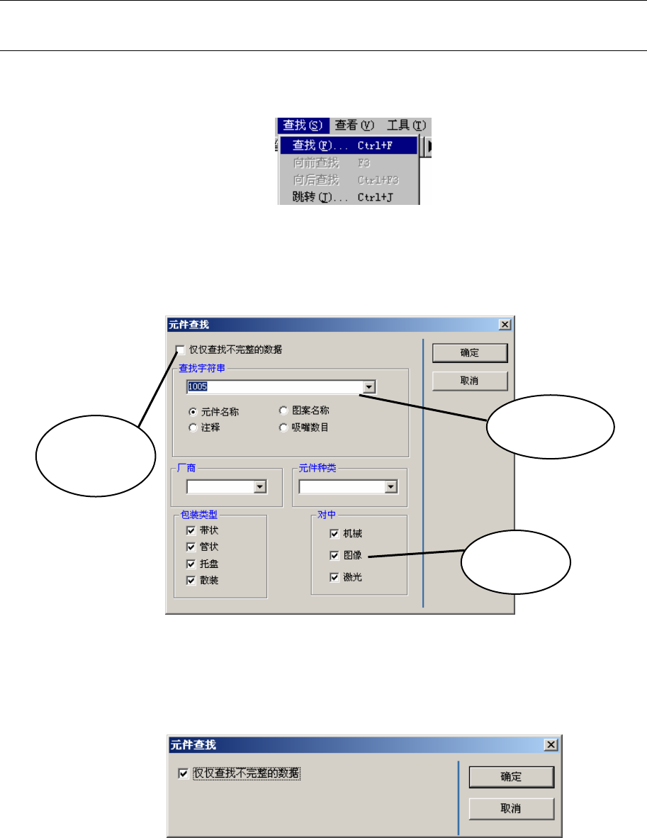 ④查找未完成的元件数据时,请单击“仅仅查找不完整的数据”。显示如下画面后,再单击