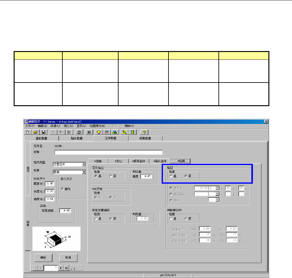 在“元件数据”的“检测”中设置是否执行元件验证以及检查的判定值。