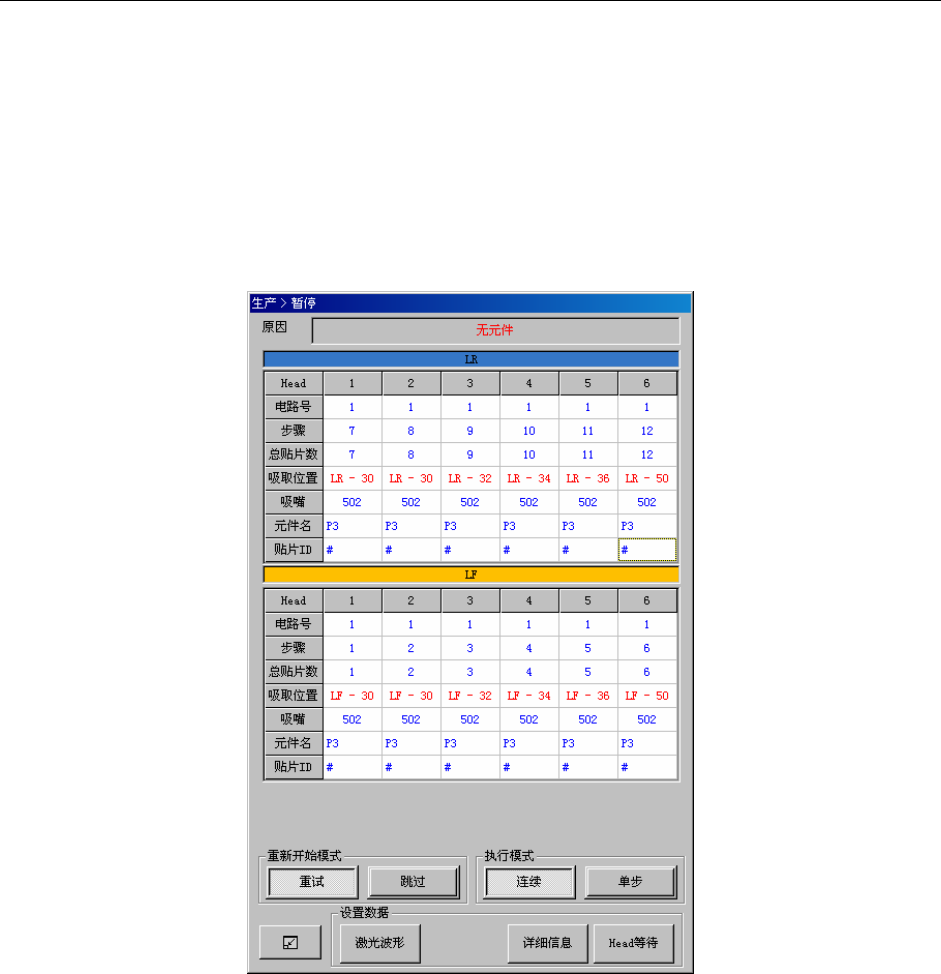 选中操作选项的“无元件暂停后,重新运行时验证元件”选项时,将对出现无元件的芯片、圆筒
