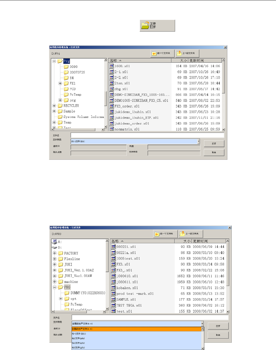 若要读取其他机种的生产程序时,请选择“文件种类”后,再点击“打开”。