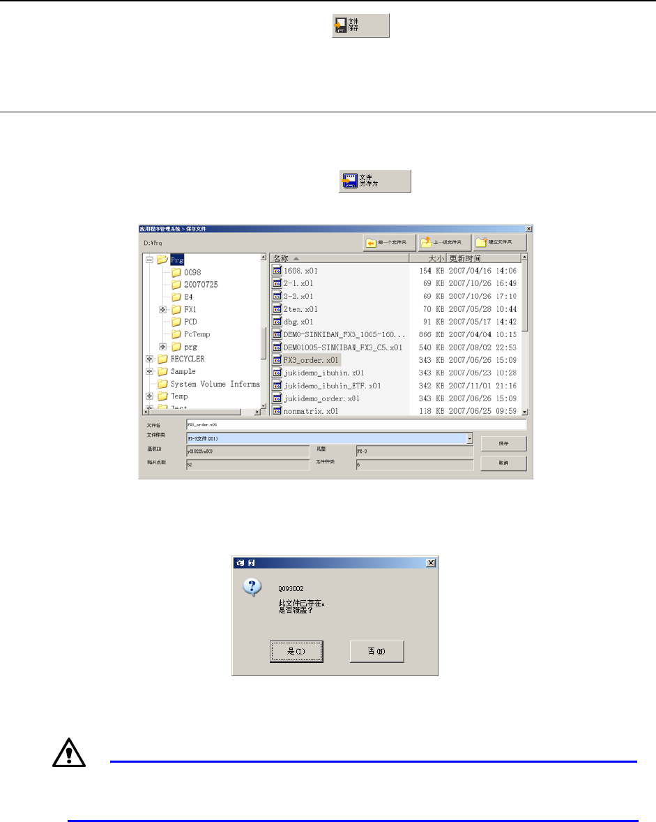 将编辑后的生产程序保存于其他文件夹、或更改文件名保存时, 选择“另存为”。