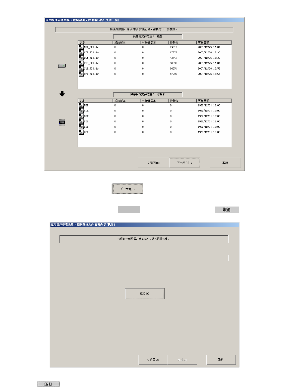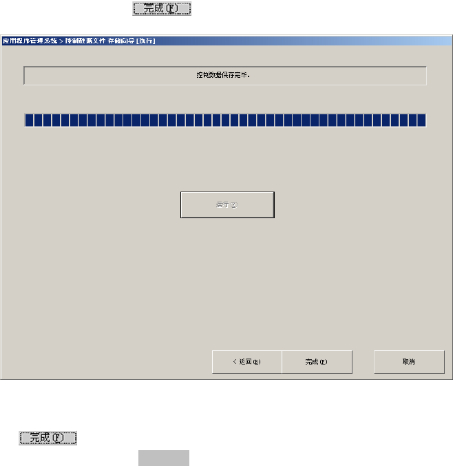 第 2 部 功能详细编 第 13 章 程序补充 13-19 保存结束后,对话框下面的 按钮变为可选。 图 13-3-1-3 保存结束时的对话框 此时点击 按钮,则可结束操作。 要变更操作内容时,请按下 按钮。 <返回(B )