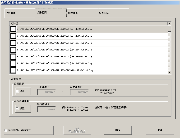 保存对象文件夹:D:\JUKI\LOG\ ErrHist
