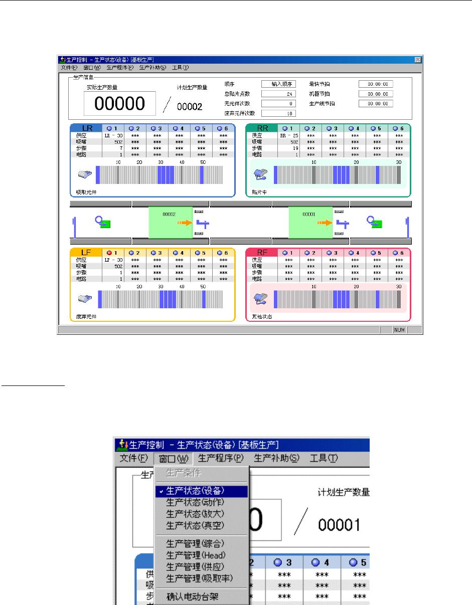 从窗口菜单的 “设备”、“动作” 、“扩充”、“真空”、“生产状态” 选择一项生产状态,即