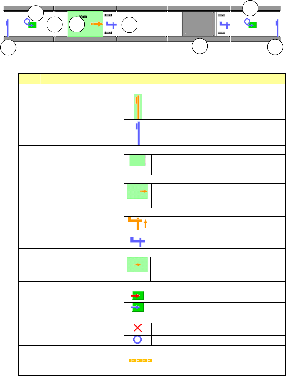 第1部 基本篇 第2章 生产 (4) 标记识别信息 1) 显示 进行标记识别时,显示出在传送信息的停止传感器上重叠的叠加画面(Super Impose)。 2) 显示的识别标记图像种类 No 项目 1 BOC 标记 2 区域标记 3 坏板标记 4 供料器台架标记 5 多目的标记 6 整体坏板标记 2-62