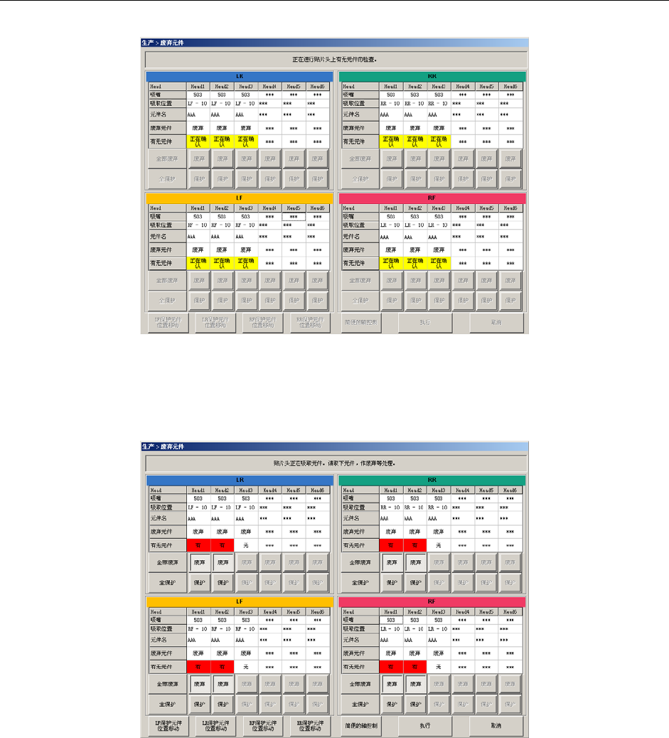 执行 对于有元件的贴片头,连续进行选择的操作(废弃、保护)。