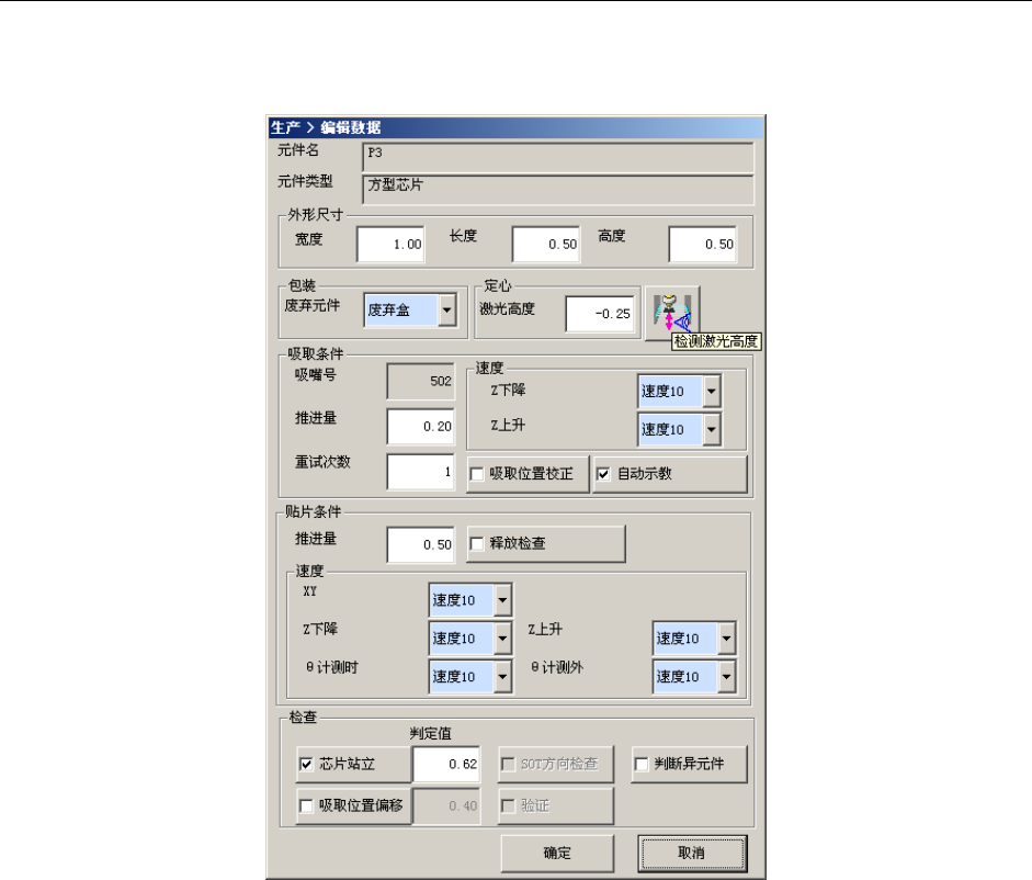 吸着坐标 Z 显示吸取位置的 Z 坐标。 -