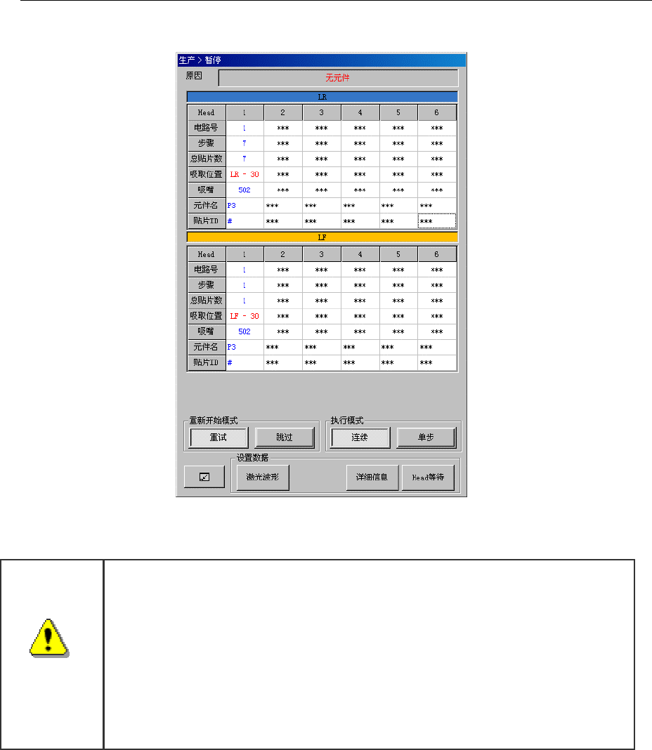 请补充元件,排除重试超次的原因(补充元件剩余数等)后,重新开始生产。