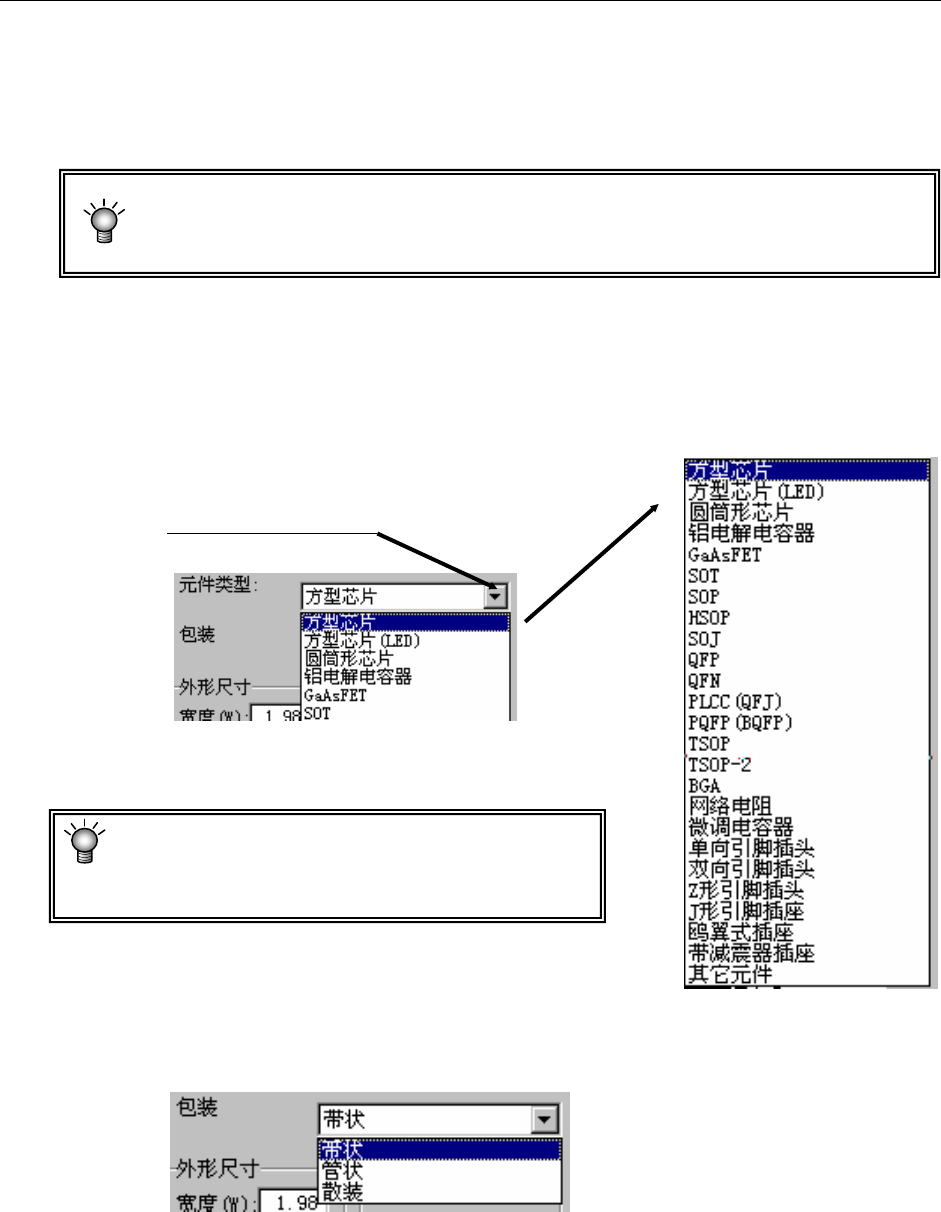 需要进行变更时,请从下拉式列表中选择元件包装方式。