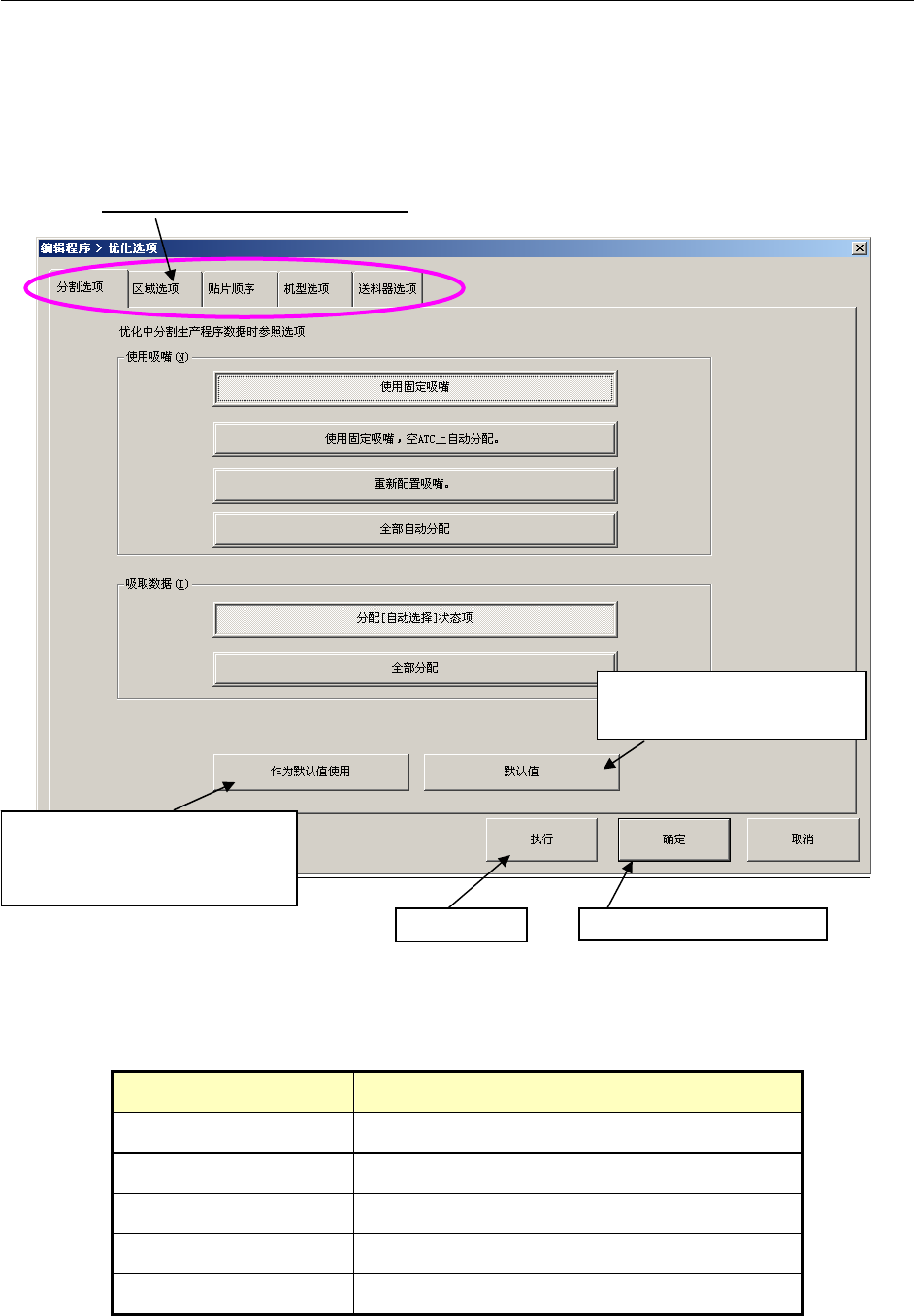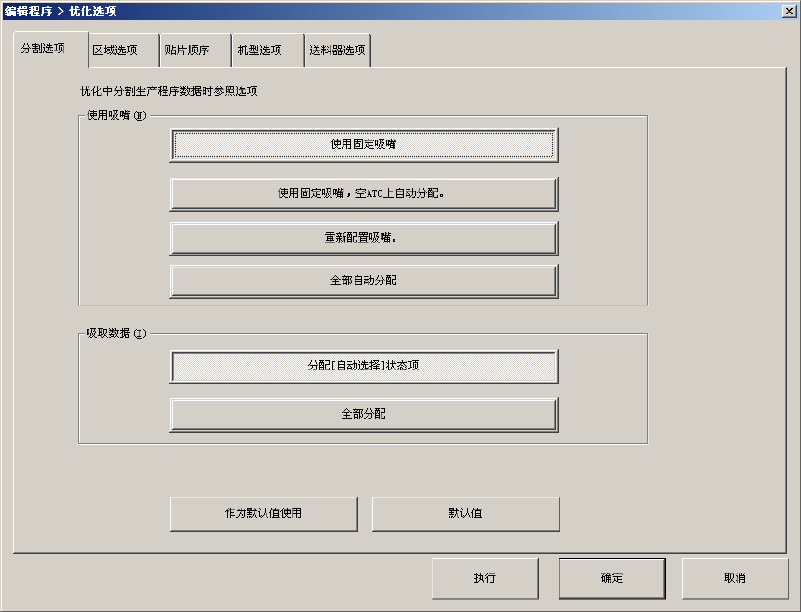 分割选项 设置分配吸嘴及吸取数据时的优化参照选项。