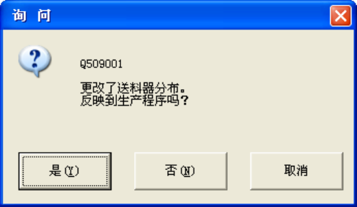 编辑后关闭供料器分布画面时,会显示下列信息,询问是否把编辑内容反映到程序数据中。