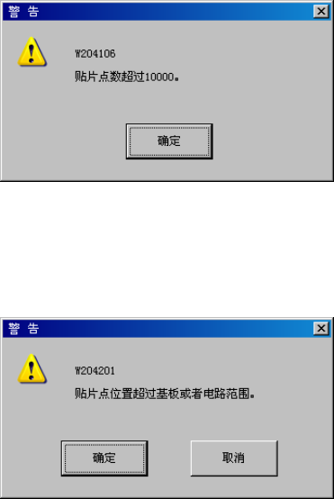 第1部 基本编 第4章 制作生产程序 4-126 图 4-5-1-1-22 数据数超出范围 图 4-5-1-1-23 贴片点位置超出错误