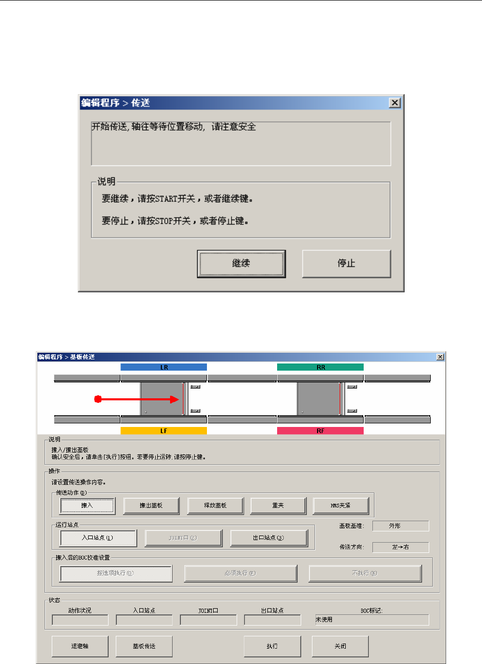 将轴移动到安全位置等待后,会显示下列基板传送画面。