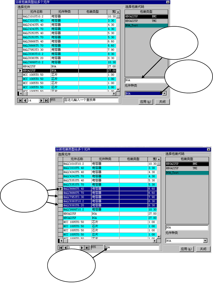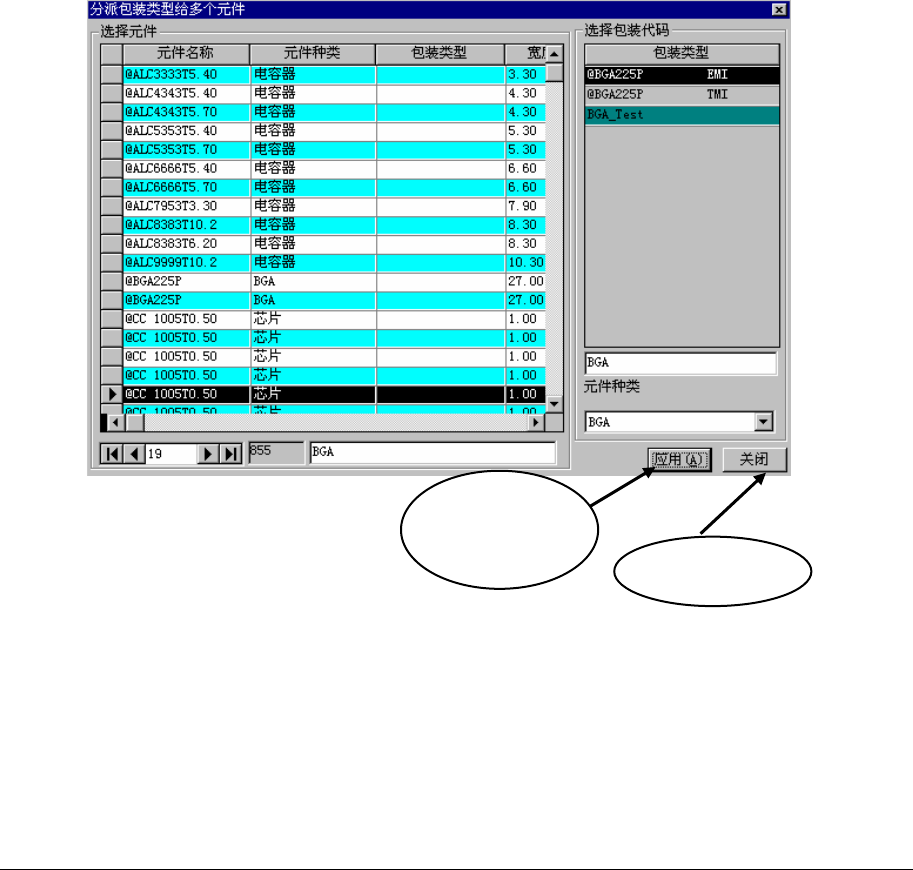 (4) 选择元件数据和包装类型,按“应用”按钮后,可把包装类型分派到所选择的元件数据