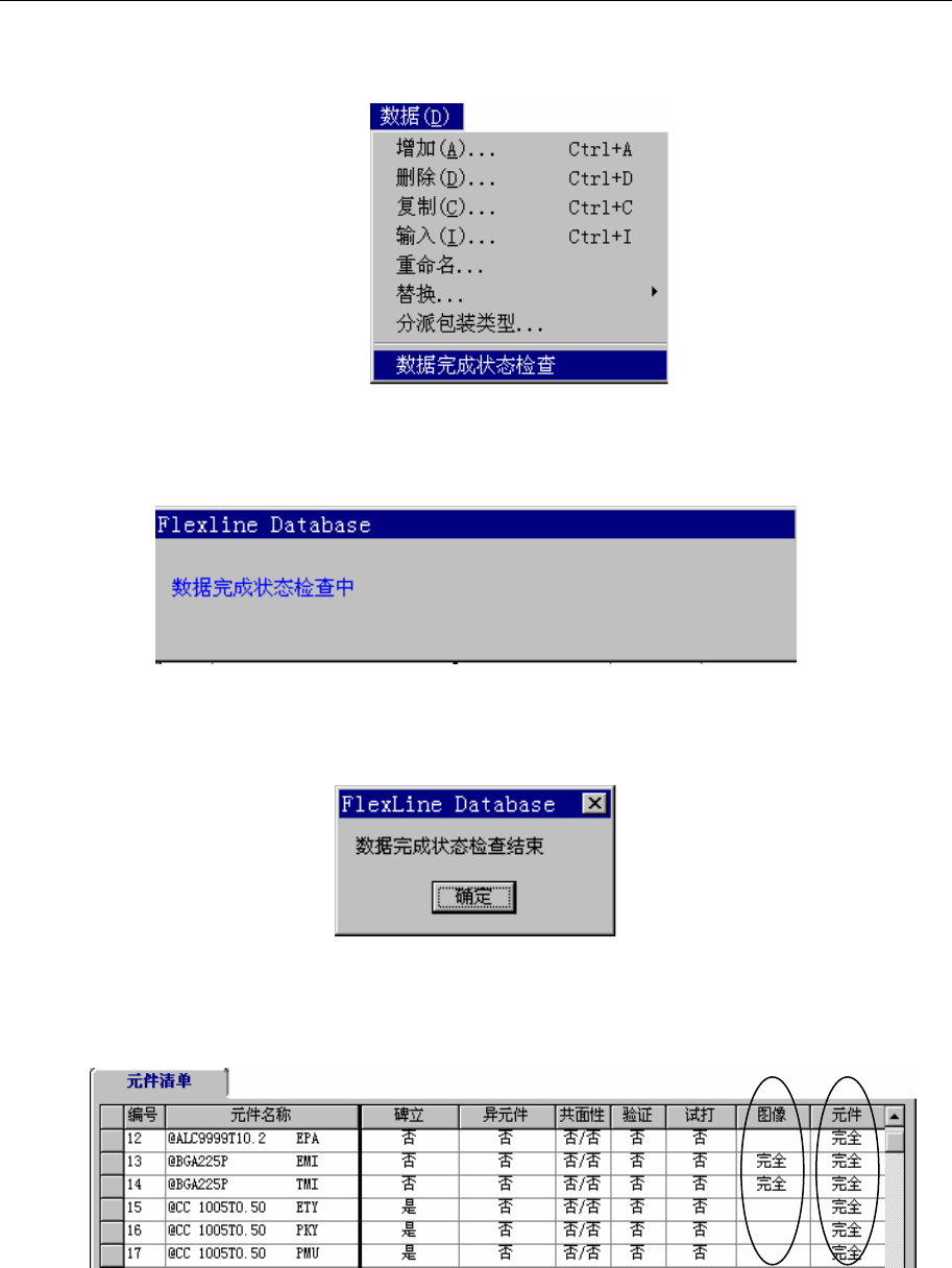 这项功能可对读入 Flexline 数据库的元件及图像数据的完成状态,进行再次检查。