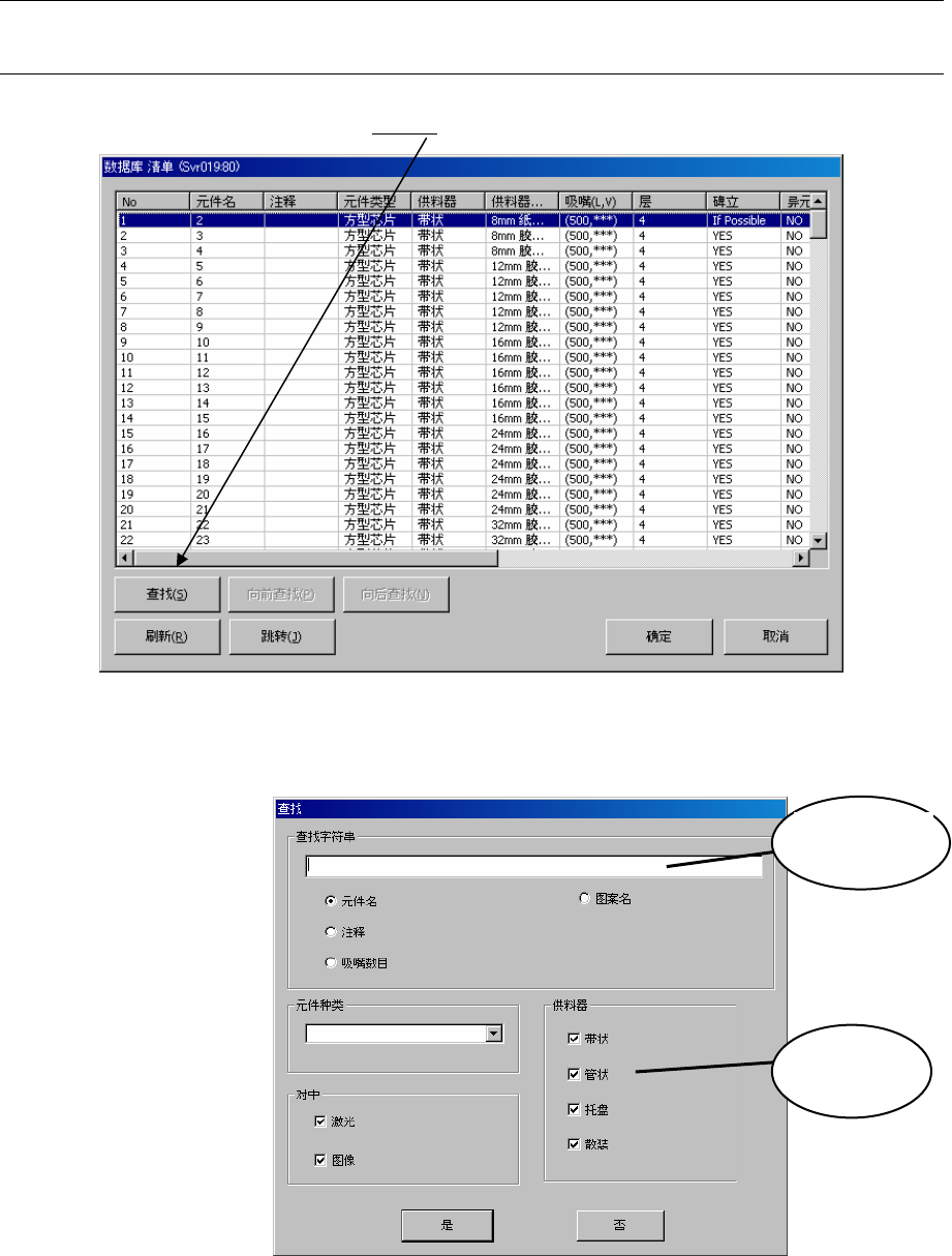 ③ 查找结束后,显示“数据库 清单”,并着重显示符合输入条件的数据库中的元件数据。