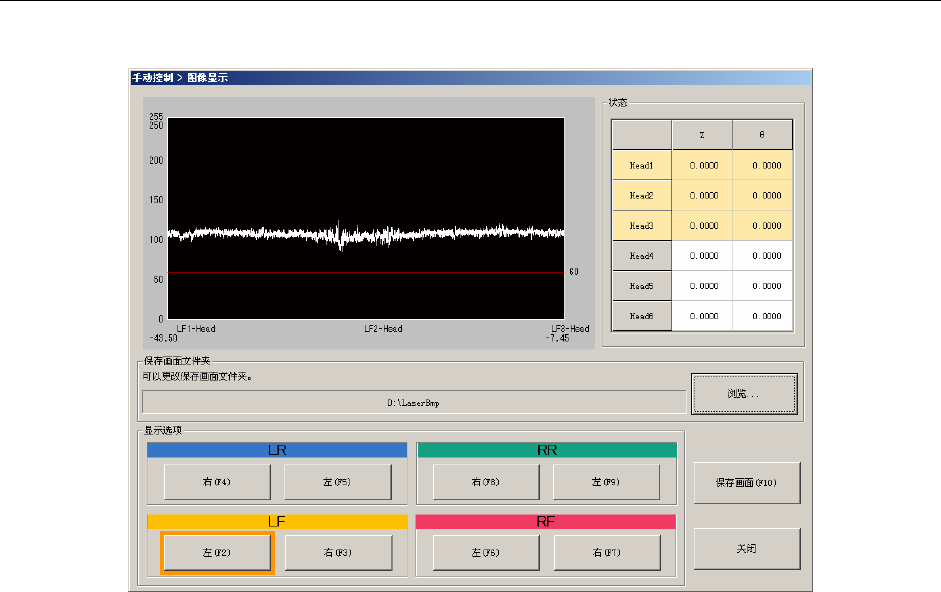 结束控制后,画面显示控制 Head 的真空 ON、OFF 状态,Z 轴坐标,激光计测结果。