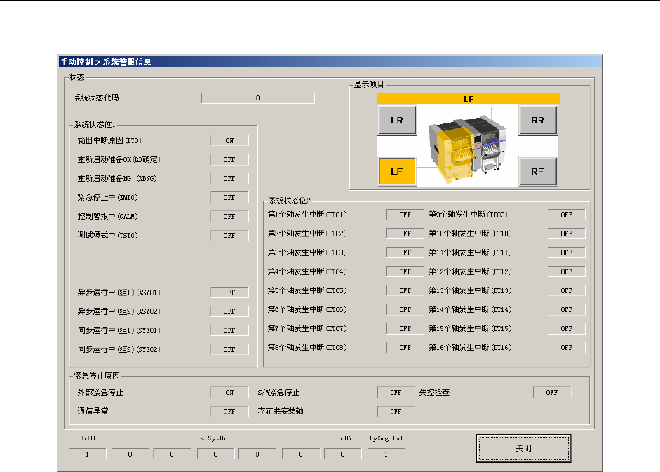 显示状态代码、及各种状态位的 ON/OFF 状态。