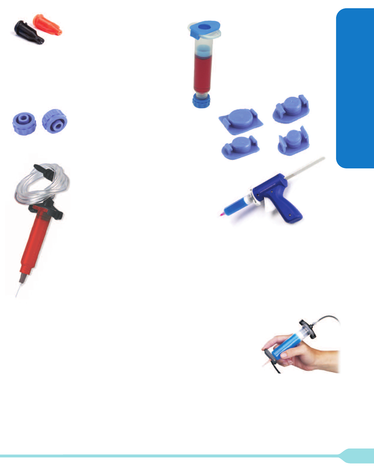 air hose, sample tips, syringe barrel and adapter. Features a small