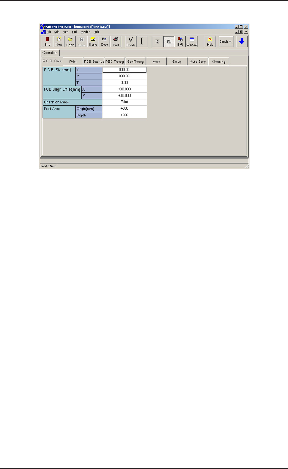 (3) 显示默认值下的“Pattern Program( 线路板程序 )”编辑界面。